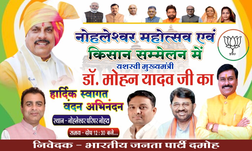 दमोह : नोहटा में आयोजित नोहलेश्वर महोत्सव जनसेवा, सांस्कृतिक चेतना और सामाजिक समरसता का जीवंत उदाहरण बनकर सामने आया। महोत्सव के अंतर्गत जहाँ एक ओर दो दिवसीय विशाल निःशुल्क चिकित्सा…