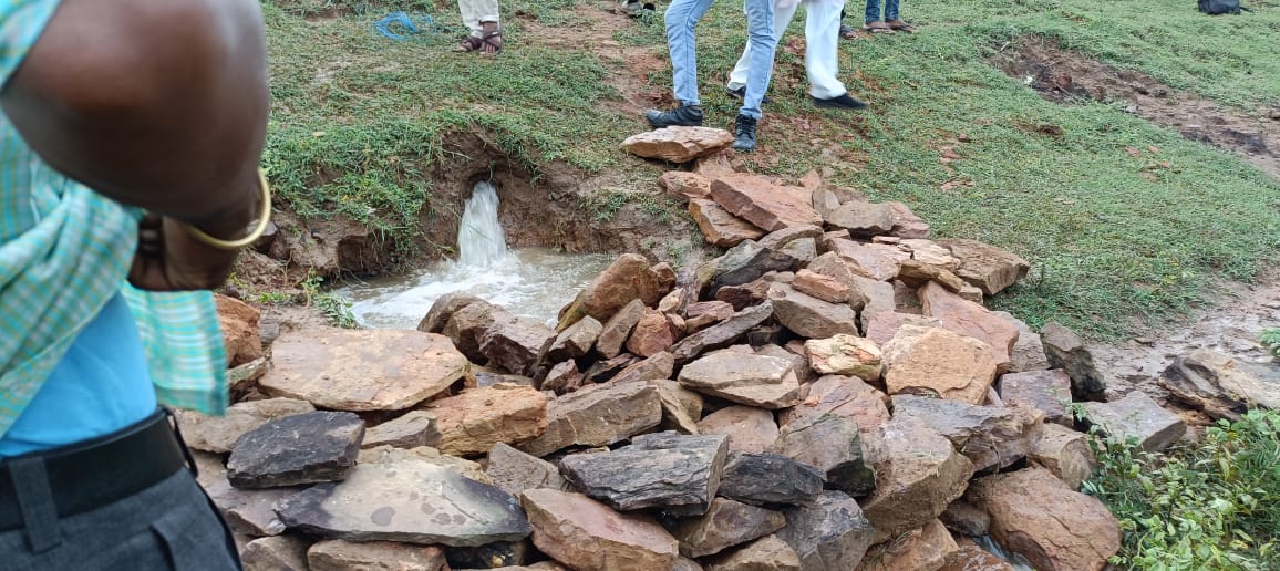 बारिश के बीच तालाब में छेद की जानकारी आने पर मचा हड़कंप