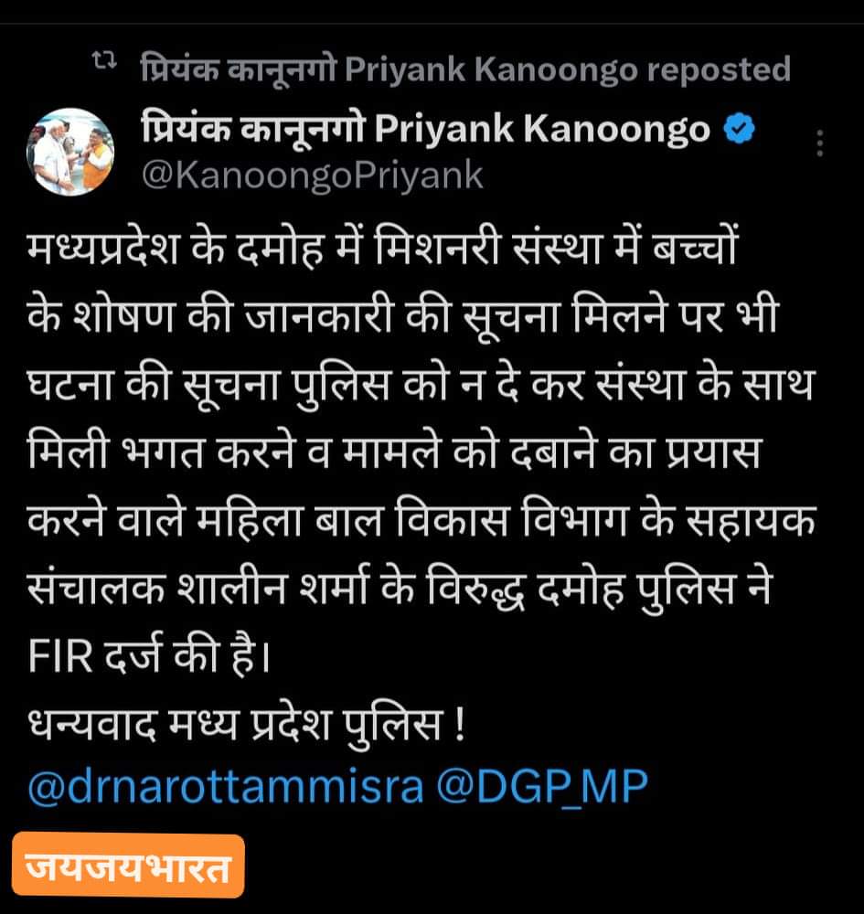 Read Moreमिशनरी संस्था आधारशिला को एक नावालिग से जुड़े मामले में मदद करने का आरोप दमोह।नगर के चर्चित आधारशिला संस्थान मामले में एक नई कार्यवाही सामने आई है जिसमें पुलिस ने सहायक संचालक महिला बाल विकास दमोह शालीन शर्मा पर पॉक्सों एक्ट के तहत मामला दर्ज किया है। पुलिस द्वारा यह कार्यवाही आधारशिला संस्थान में सामने…
