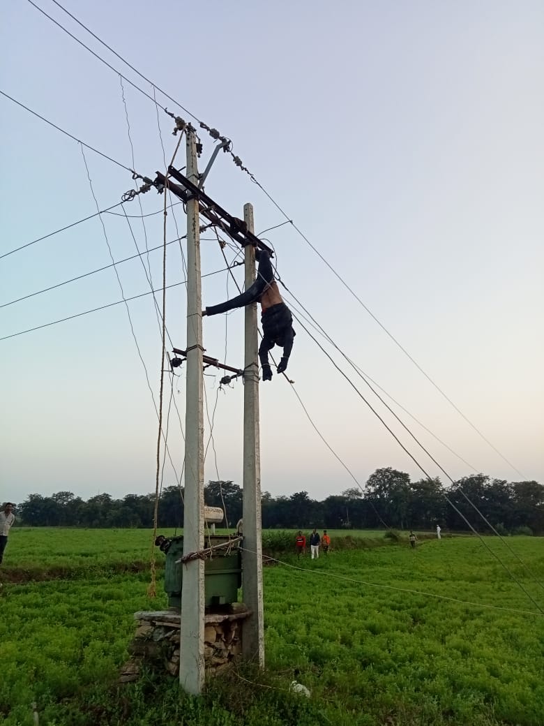 दमोह। देहात थाना की नरसिंहगढ़ चौकी अंतर्गत ग्राम ढिगसर के झिराहार में रविवार को विद्युत पोल पर चढक़र लाइन सुधार का कार्य कर रहा एक लाइनमेन करंट के तारों की चपेट में आ गया। तेज करंट के चलते उसका शव विद्युत पोल के तारों पर ही फसा रहा। लोगों ने घटना को देख सब स्टेशन पर इसकी सूचना दी जिसके बाद लाइन का बंद कर आगामी कार्यवाही की जा रही है। प्राप्त जानकारी अनुसार निजी रूप से विभाग को लाइनमेन के रूप में अपनी सेवा देने बाला महेश रजक ग्राम मंडला में विद्युत लाइन पर कार्य कर रहा था और इसी दौरान तारों में करंट आ गया जिससे यह हादसा हुआ। मामले की सूचना मिलने परनरसिंहगढ़ चौकी प्रभारी प्रसीता कुर्मी मौके पर पहुंची और मामले की जांच शुरु की है और शव का पोल से उतारे जाने की कार्यवाही शुरु की जा रही है। मामले के संबंध में संबंधितों के वयानों को दर्ज किया गया जाएगा और जो भी तथ्य सामने आएगें उसके अनुसार कार्यवाही की जाएगी।