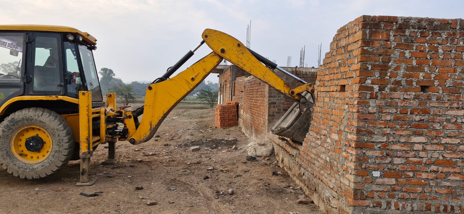 भारी भरकम अमले ने ध्वस्त किया एक अवैध बूचड़खाना