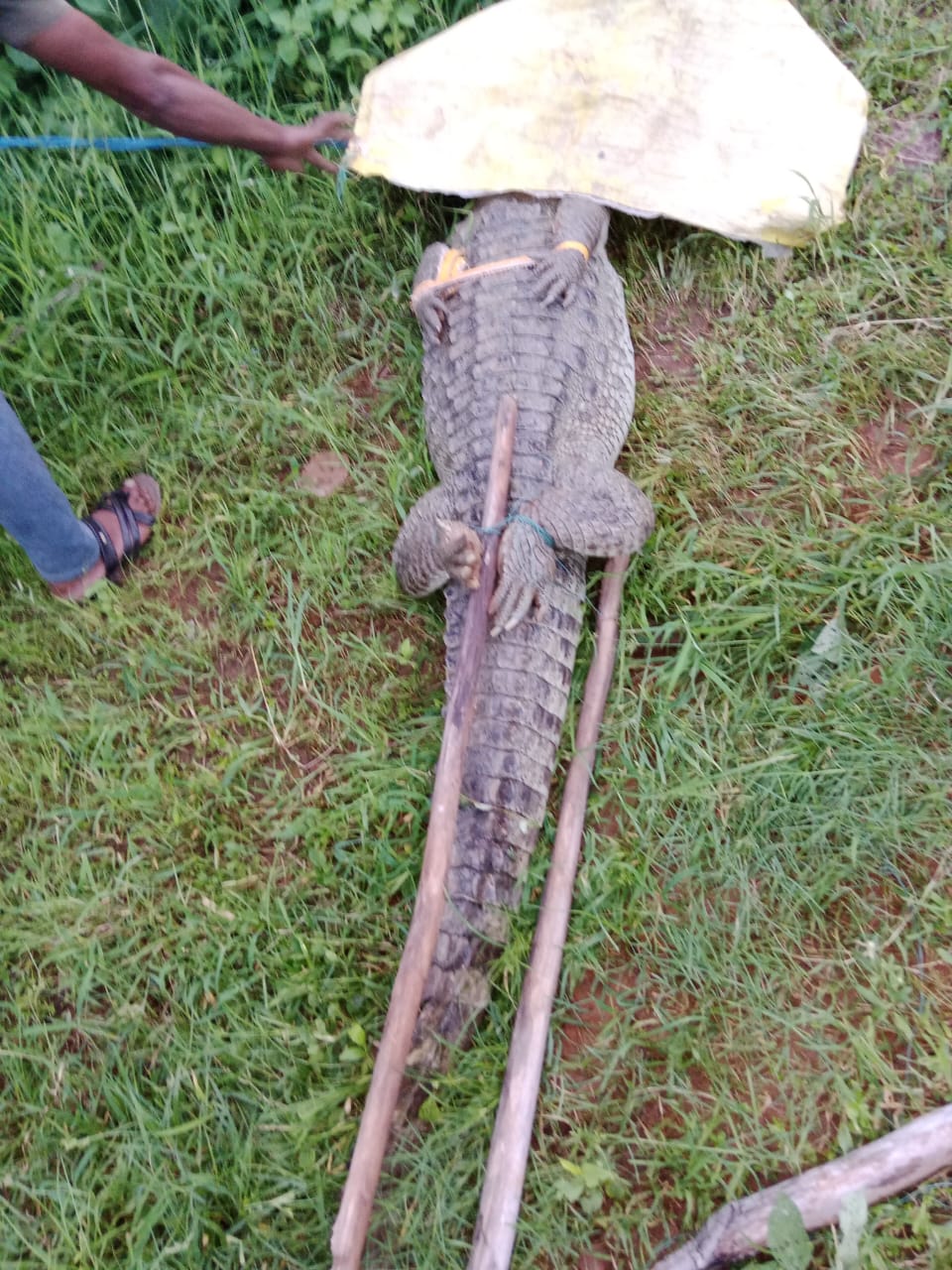 महगुवा ग्राम में घर तक जा पहुंचा 7 फीट का मगरमच्छ रात भर चला रेस्क्यू ऑपरेशन
