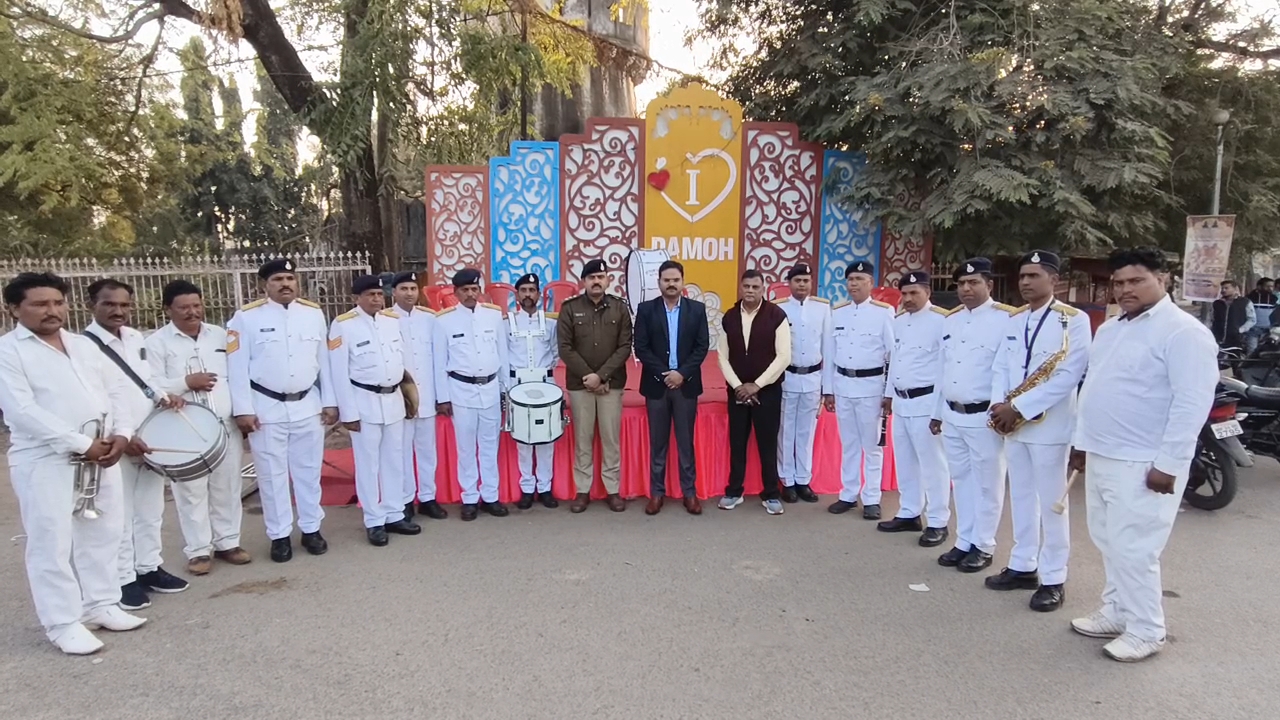 दमोह। प्रदेश में आयोजित हो रहे मुख्यमंत्री जन कल्याण पर्व एवं विजय दिवस के उपलक्ष्य में सोमवार को नगर के कीर्ति स्तंभ चौराहे पर पुलिस विभाग द्वारा विशेष कार्यक्रम आयोजित किया गया। कार्यक्रम में दसवीं बटालियन सागर के पुलिस बैंड ने देशभक्ति गीतों की धुनों पर प्रस्तुति दी।