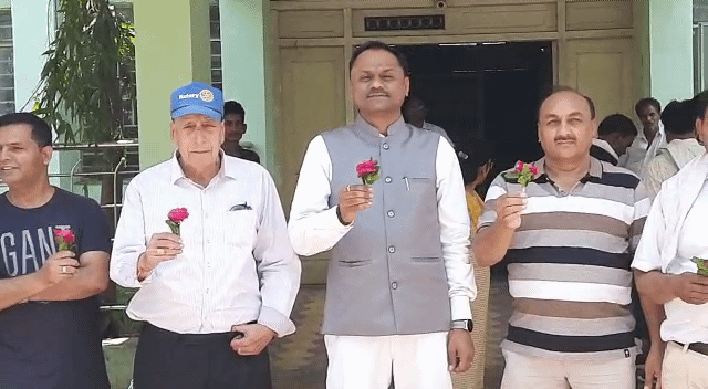 अब हाथों में गुलाब लेकर प्रशासन से गुहार लगाने पहुंचे पीड़ित दुकानदार
