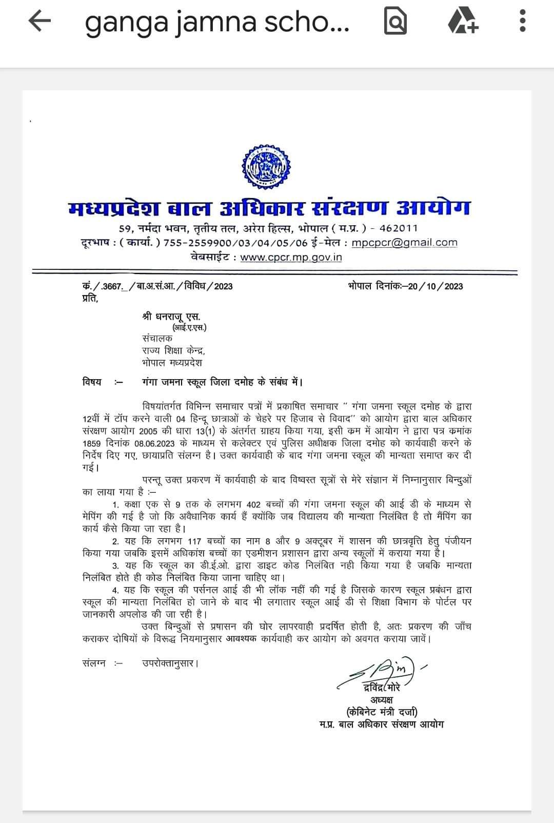 निलंबित मान्यता में गंगा जमुना स्कूल की मैपिंग मामले में बाल अधिकार संरक्षण आयोग ने दिए जांच के निर्देश