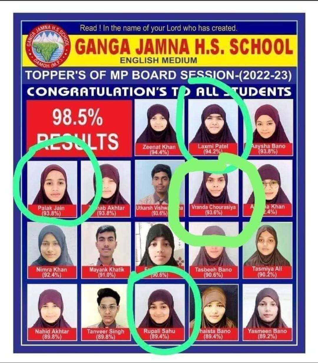 गृह मंत्रालय और राष्ट्रीय बाल संरक्षण आयोग के संज्ञान के बाद फिर 3 सदस्य टीम करेगी मामले की जांच दमोह। नगर के एक निजी स्कूल में 10वीं के परीक्षा परिणामों में टॉपर रही हिंदू छात्राओं को हिजाब में दिखाए जाने का मामला सामने आया है स्कूल प्रबंधन द्वारा लगाए गए एक बैनर के बाद मामले…
