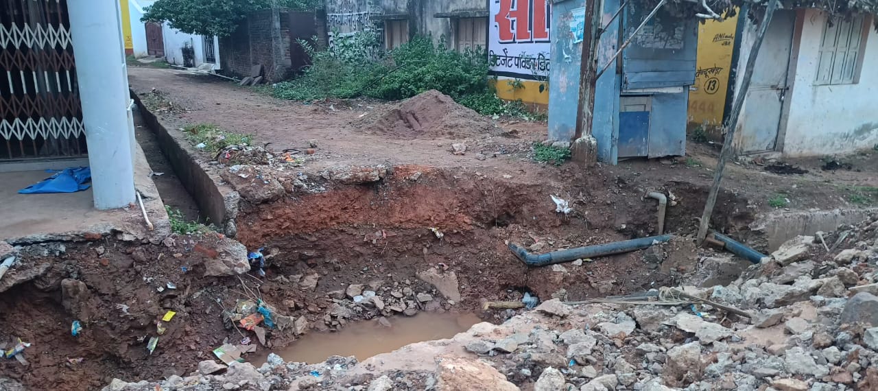 बारिश में खोद कर छोड़ दी पुलिया, हादसों का बना अंदेशा