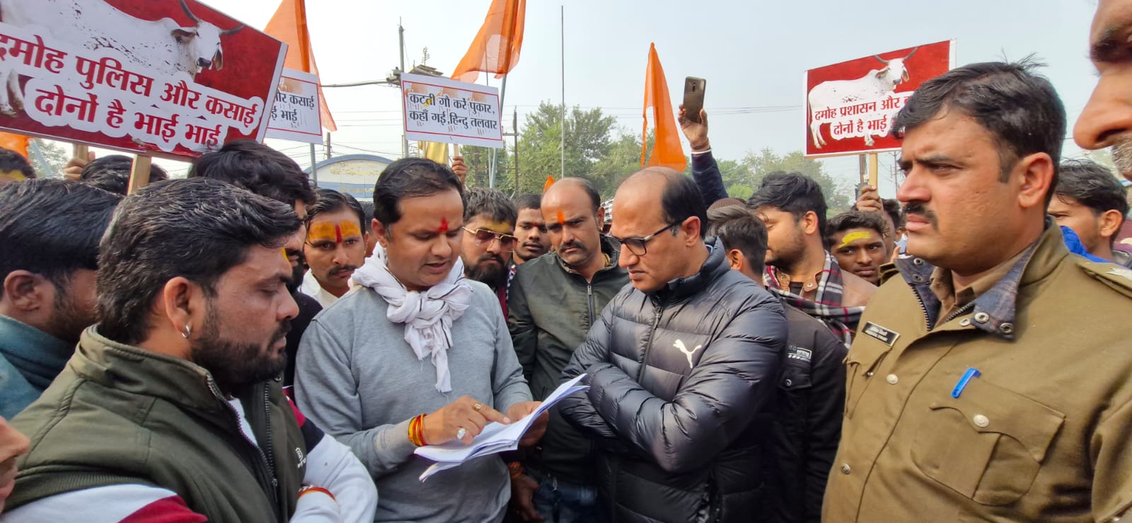 घटना के बाद बने तनाव के हालात ,आक्रोशित हिन्दू समाज ने रखा दमोह बंद कड़ी कार्यवाही के आश्वाशन के बाद समाप्त हुआ धरना, घटना स्थल के अवैध अतिक्रमण किए ध्वस्त दमोह। गोवंश तस्करी और गोवंश हत्याओं की घटनाओं को लेकर चर्चित जिले में शुक्रवार तड़के एक गर्भवती गाय को जिंदा काटे जाने का मामला सामने…