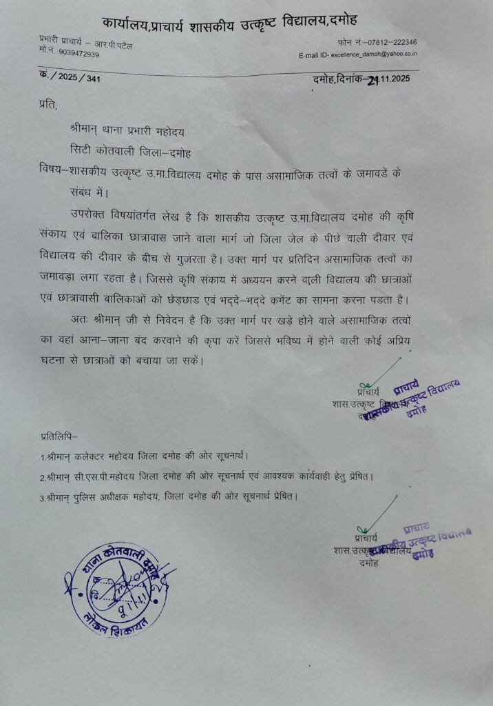 स्कूल परिसर के आसपास संदिग्ध गतिविधियों के चलते छात्रों की सुरक्षा को लेकर पुलिस को आवेदन देकर कार्यवाही की मांग की गई है।