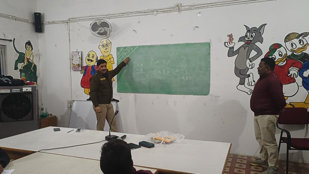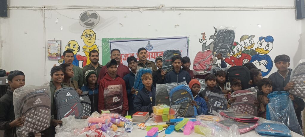 उसी श्रृंखला में आज अति पुलिस अधीक्षक सुजीत भदौरिया द्वारा बच्चों को गणित का पाठ पढ़ाया गया।जिसमे जोड़ना , घटाना, एवं गुणा करना सिखाया। वही गणित के सही उत्तर देने पर सुजीत भदौरिया द्वारा बच्चों का तालियों से अभिवादन भी करवाया साथ ही सभी बच्चों को स्कूली बैग, बॉटल , टिफिन , काफी, कंपास एवं पेन भी बांटे गए। यह कार्यक्रम पुलिस अधीक्षक श्रुतकीर्ति सोमवंशी के मार्गदर्शन में चलाया जा रहा है।नोडल पर्यवेक्षक अति पुलिस अधीक्षक ने बताया कि इन बच्चों को नशा संबंधी जागरूकता ,सुलोचन के दुष्प्रभाव एवं गुड टच-बैड टच जैसे चीज़े सिखायी और पढ़ाई जा रही है।