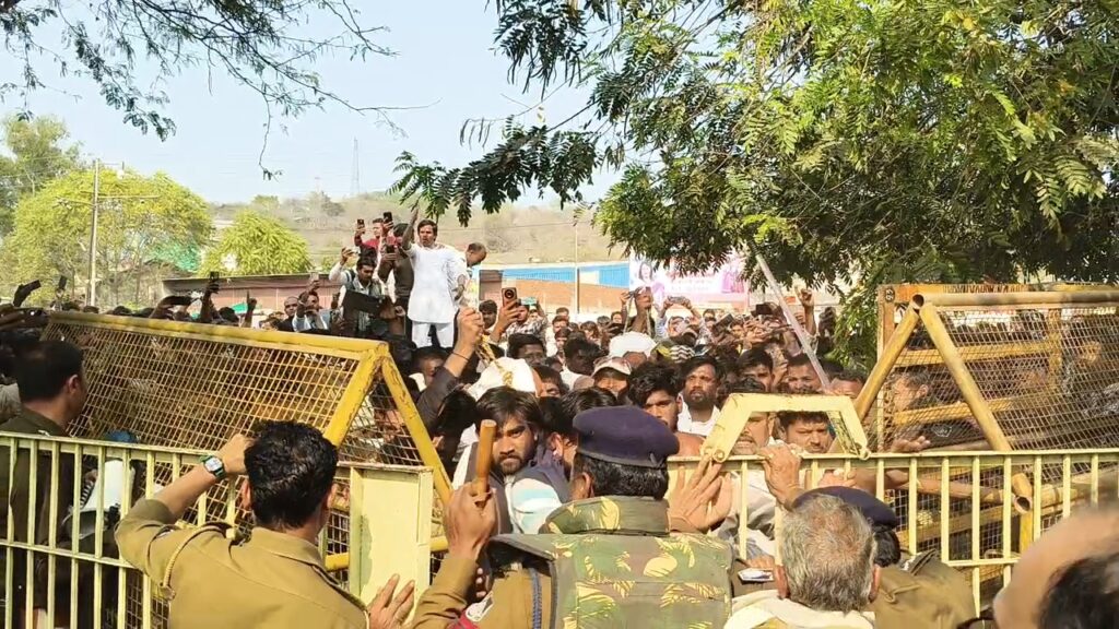 जहां पहले प्रदर्शनकारी कलेक्टर को मौके पर बुलाए जाने की मांग करने लगे। इस दौरान एसडीएम से चर्चा के बाद प्रदर्शनकारियों के कुछ सदस्य कलेक्टर और पुलिस अधीक्षक से चर्चा के लिए गए और अपनी मांगे रखी लेकिन पुलिस प्रशासन से चर्चा के बाद भी मांगो पर सहमति नहीं बनी और विरोध प्रदर्शन जारी रहा। इसी दौरान प्रदर्शनकारियों में शामिल कुछ लोगों ने मीडियाकर्मियों के साथ अभद्रता शुरु कर दी। कई बार यह हालात सामने आने के बाद मीडियाकर्मियों ने विरोध जताया जिसके बाद विवाद के हालात बन गए और प्रदर्शनकारियों में शामिल कुछ लोग हमलावर हो गए और उनके द्वारा मारपीट शुरू कर दी। मारपीट के दौरान पुलिस जब दोनों पक्षों को दूर करने का प्रयास कर रही थी तभी प्रदर्शनकारियों में शामिल लोगों ने पथरावबाजी शुरू कर दी, जिसके चलते अफरातफरी और भगदड़ के हालात बन गए। हालातों के चलते पुलिस बल ने प्रदर्शकारियों को परिसर से बाहर खदेड़ा जिसके चलते कुछ लोगोंने मुख्य मार्ग पर भी जाम लगाने का प्रयास किया।